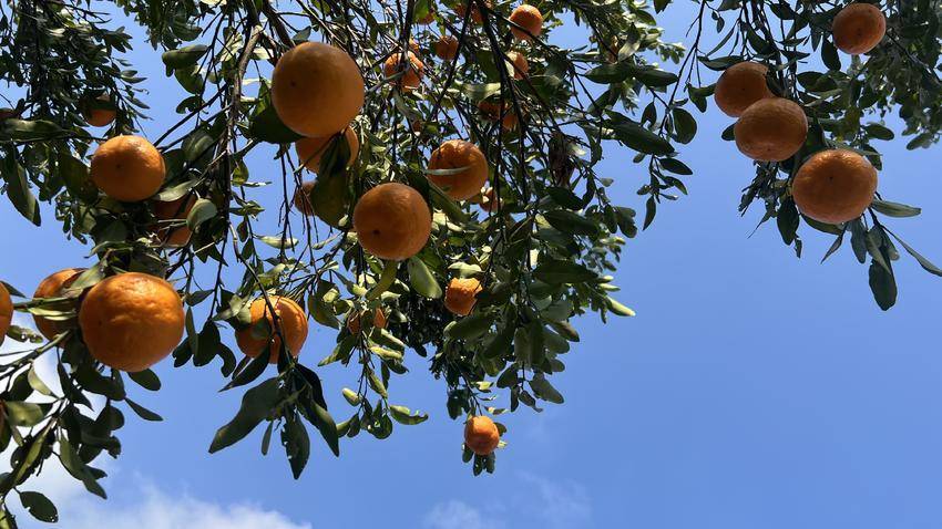 湖北日报客户端讯(通讯员 杜学平 秦春玲)12月27日,鹤峰县容梅镇康岭村王家坪椪柑园群里洒满了温暖的阳光。墨绿色的枝叶上挂满了金色的椪柑,像一盏盏金色的小灯笼。果农李世玉在果树间飞翔,手里拿着剪刀上下飞舞,剪下一个个饱满的果子,扔进竹篮里。他的脸上挂着难以抗拒的笑容,眉毛弯成了月牙形。邻居和路过的游客总是受到他热情的问候:“想吃什么就吃什么,免费!”刚从树上掉下来的椪柑,皮上还带着露水的甜味,咬下去汁水就溢出来了。果香里,有丰收的喜悦,有人心的温暖。